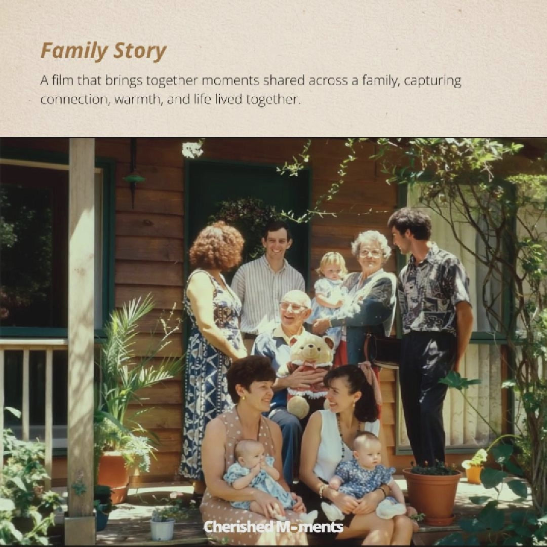 Our Memory Film is created to be felt, not rushed - allowing you to relive the past as it once was. A lasting emotional keepsake to be shared, revisited, and treasured by the whole family over time.
